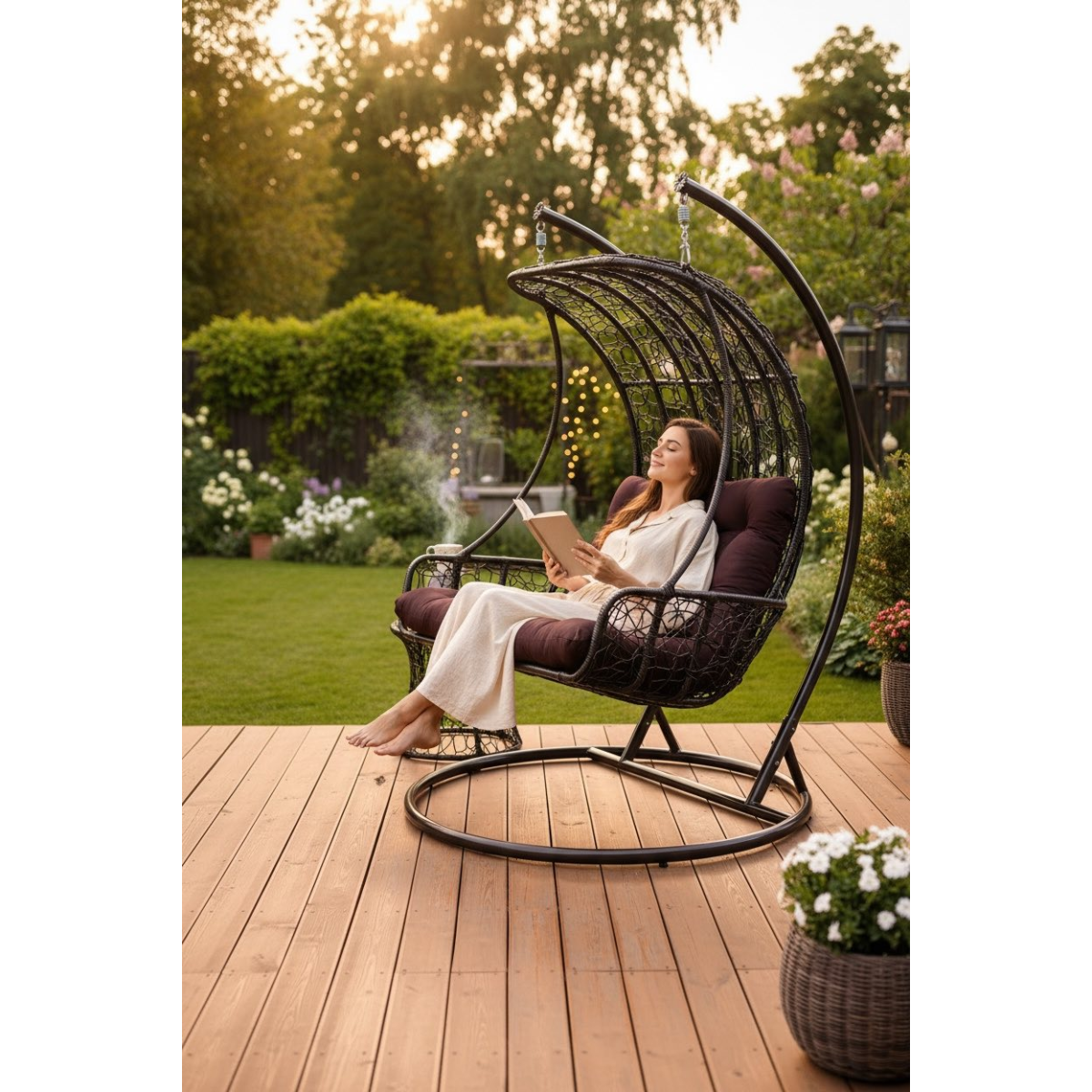 Гойдалка-кокон двомісна стане чудовим подарунком та улюбленим місцем відпочинку для всієї родини. Двомісний кокон підійде якщо одномісний кокон для Вас замалий. Великі та м'які подушки наповнені холлофайбером допоможуть максимально розслабитись під час відпочинку.