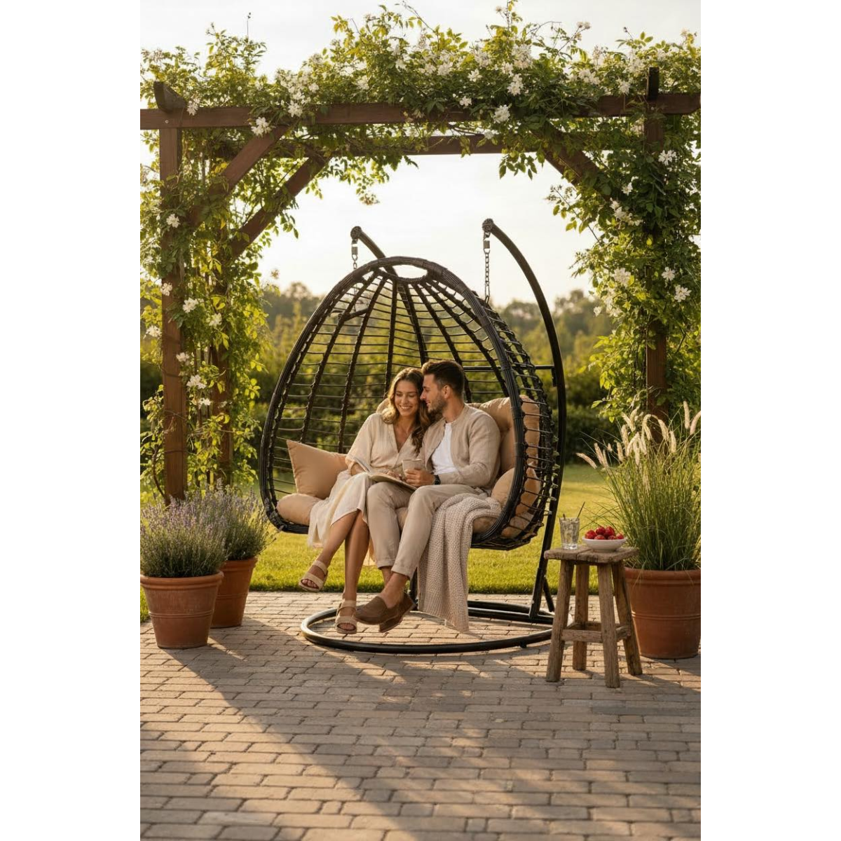 Гойдалка-кокон двомісна стане чудовим подарунком та улюбленим місцем відпочинку для всієї родини. Двомісний кокон підійде якщо одномісний кокон для Вас замалий. Великі та м'які подушки наповнені холлофайбером допоможуть максимально розслабитись під час відпочинку.